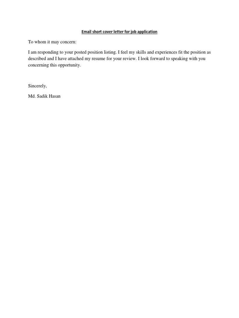 It is a single page with text on only one side. Open the letter by describing your interest. A short application cover letter is a document attached to a job application or resume.